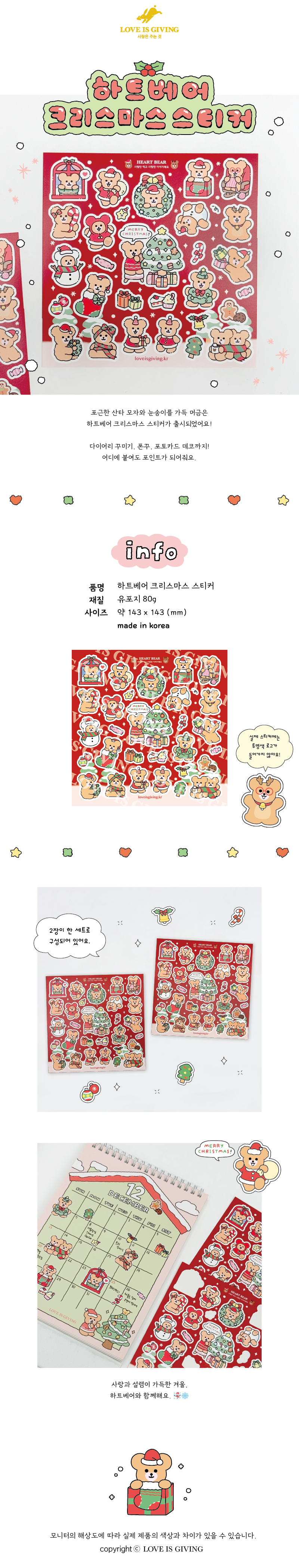 하트베어 크리스마스 스티커