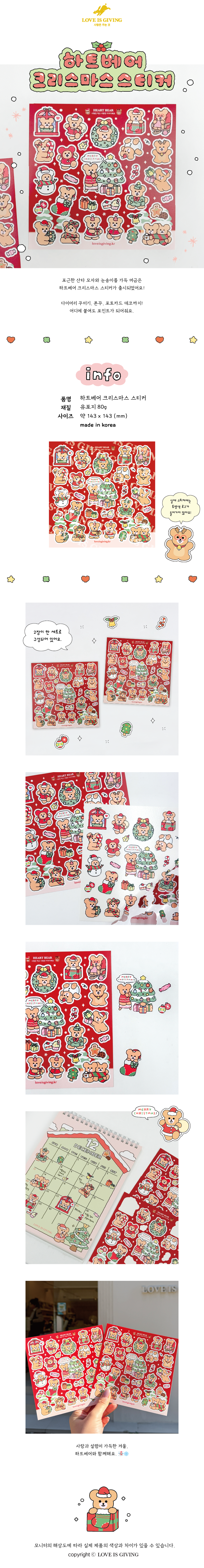 하트베어 크리스마스 스티커(2ea)