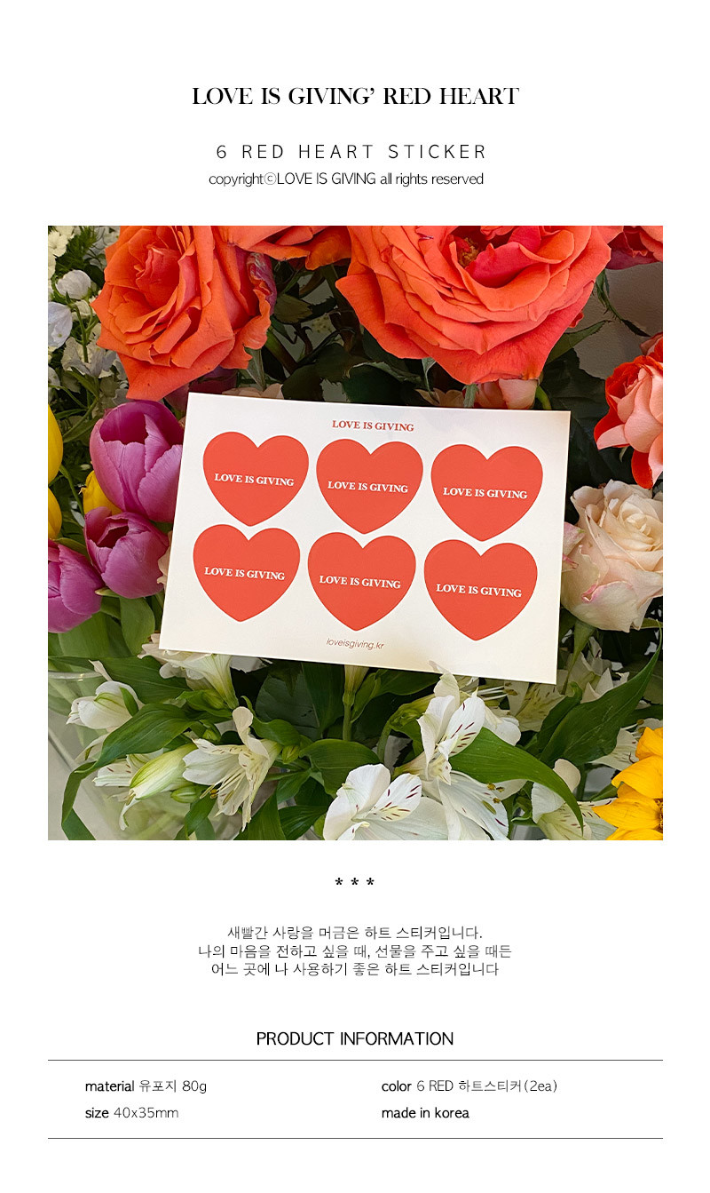 *단종예정* 6 RED 하트스티커(2ea)