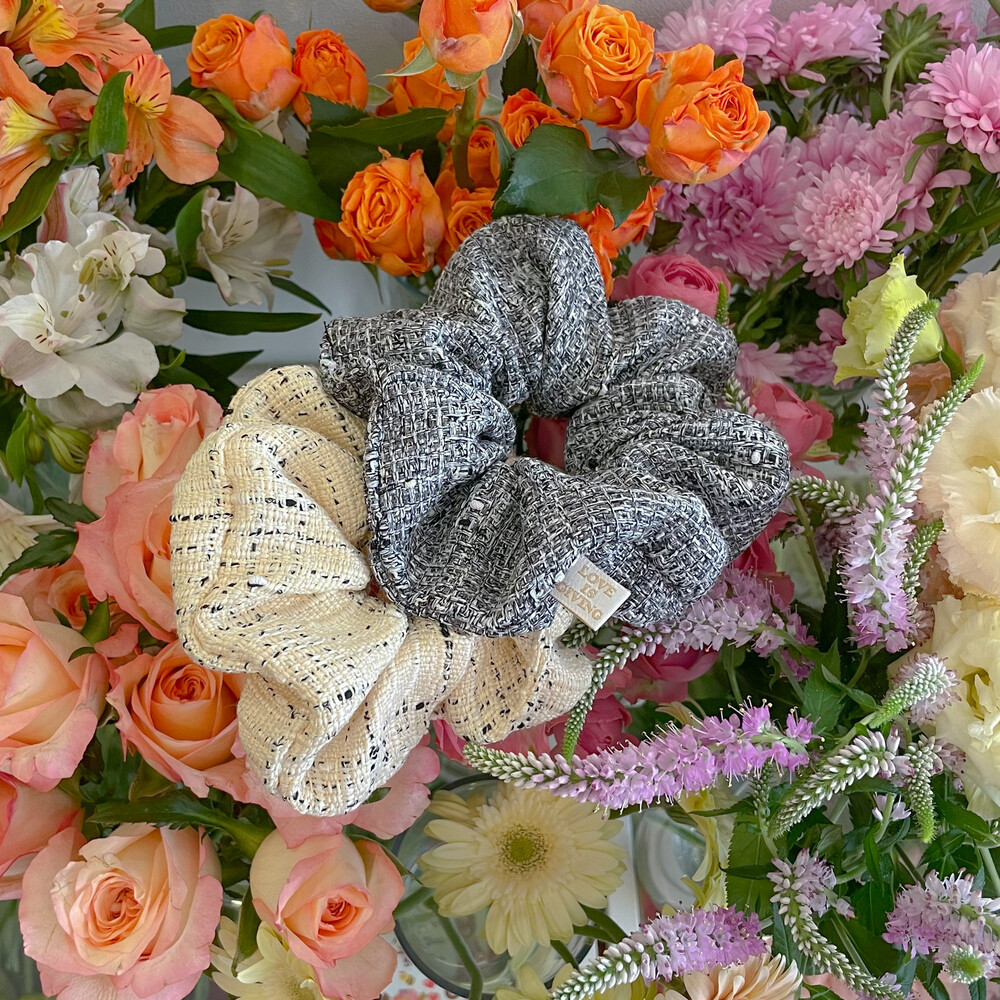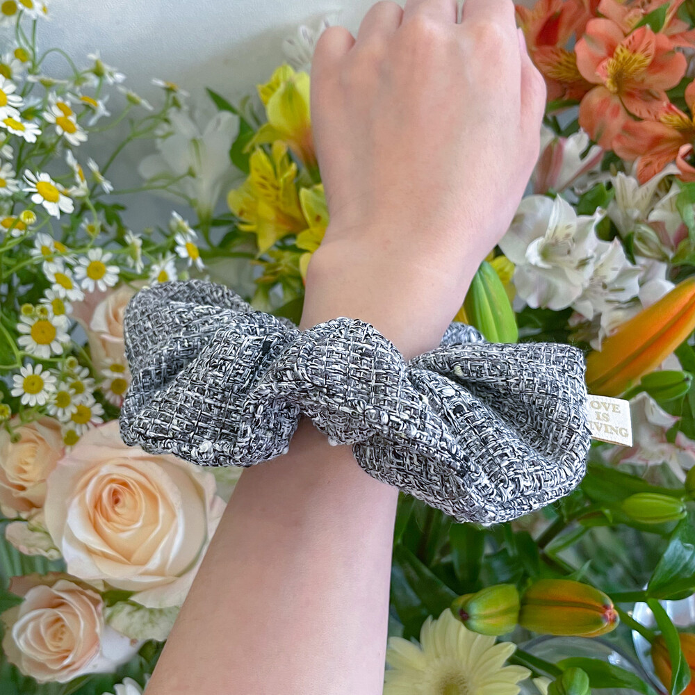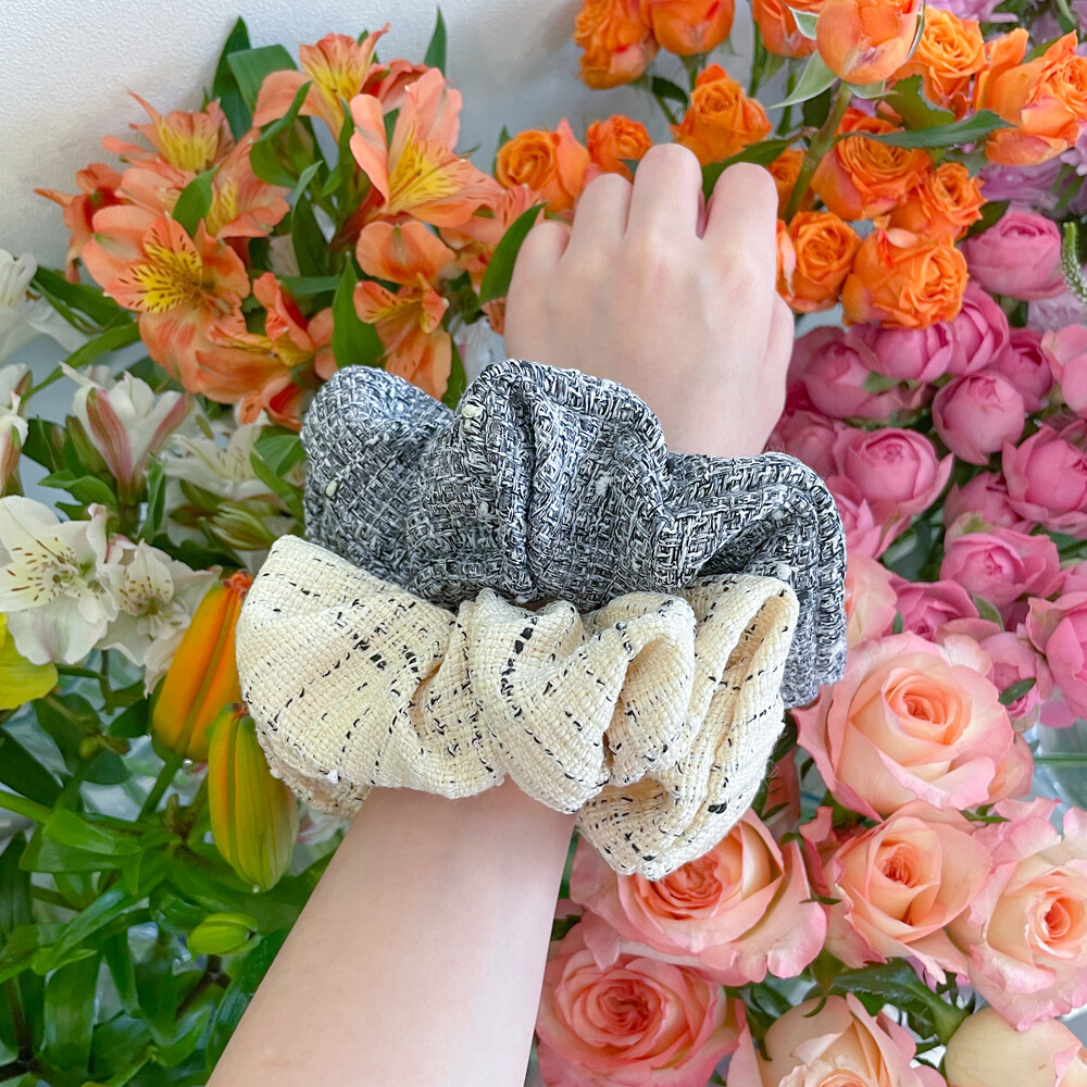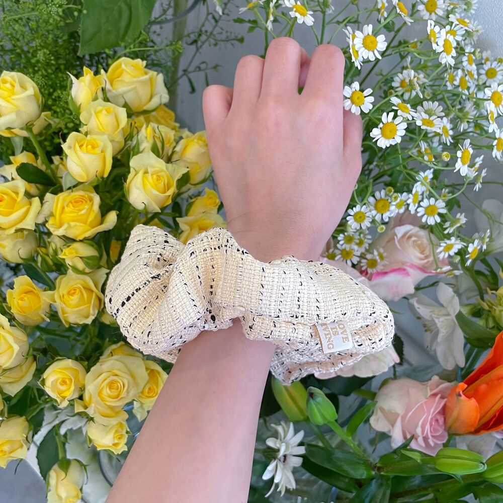 4계절 모두 잘 어울릴 트위드 슈슈밴드에요.
